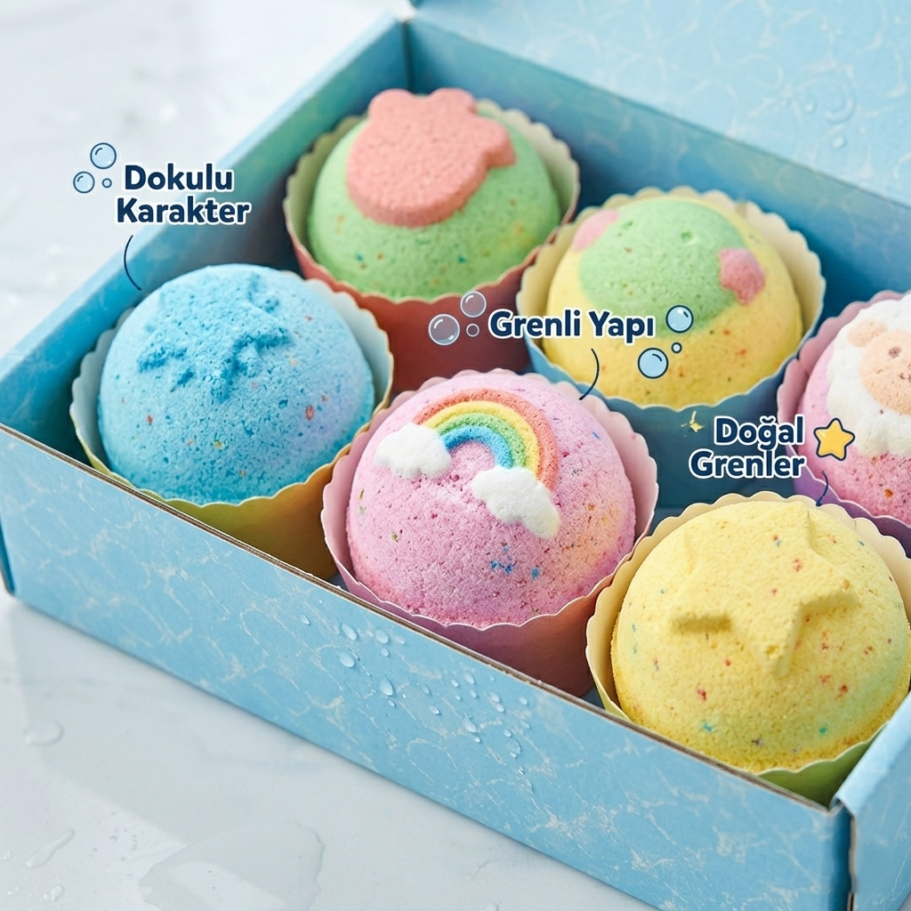 - 🎁 Sürpriz Oyuncaklar: Her banyo bombasının kalbinde, çocuğunuzun yeni oyun arkadaşı gizli!